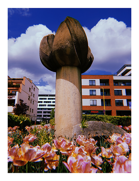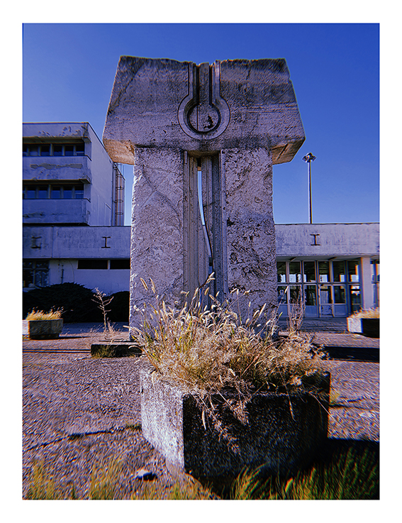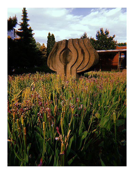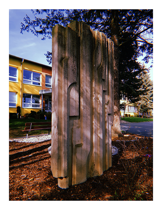 Kamenná skulptúra v areáli Chemickej školy (Dnes Obchodná akadémia)