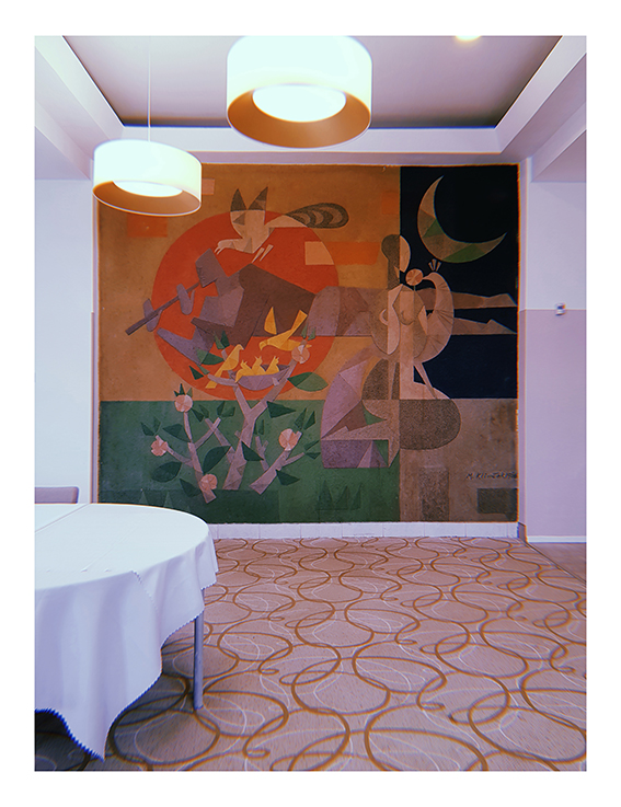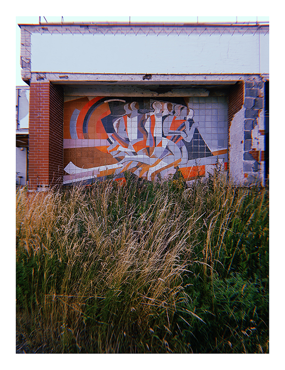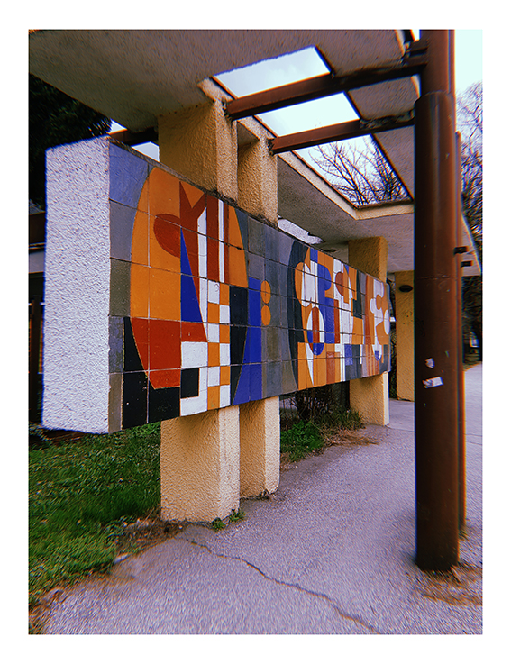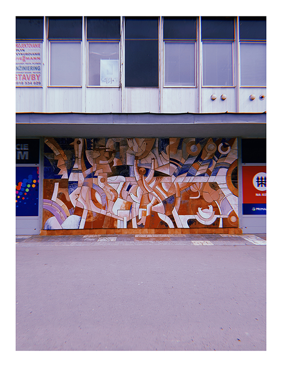 Keramická mozaika na administratívnej budove Chemko Stražské