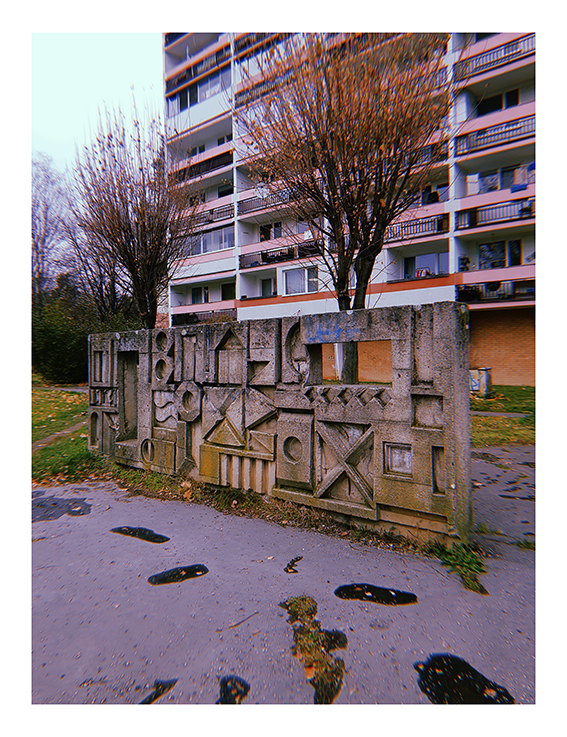 Kovový reliéf je umiestnený na priečelí budovy mestského úradu na Luníku VIII.