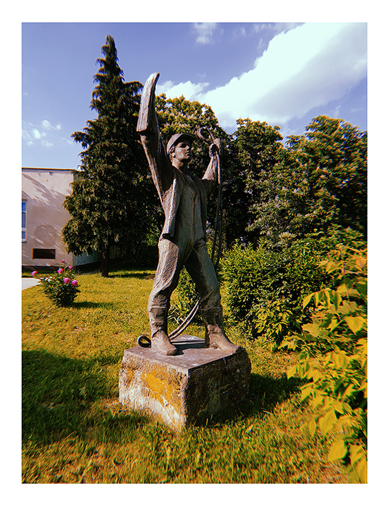 Socha z rokov pred vstupom do podniku Chemko Stražské