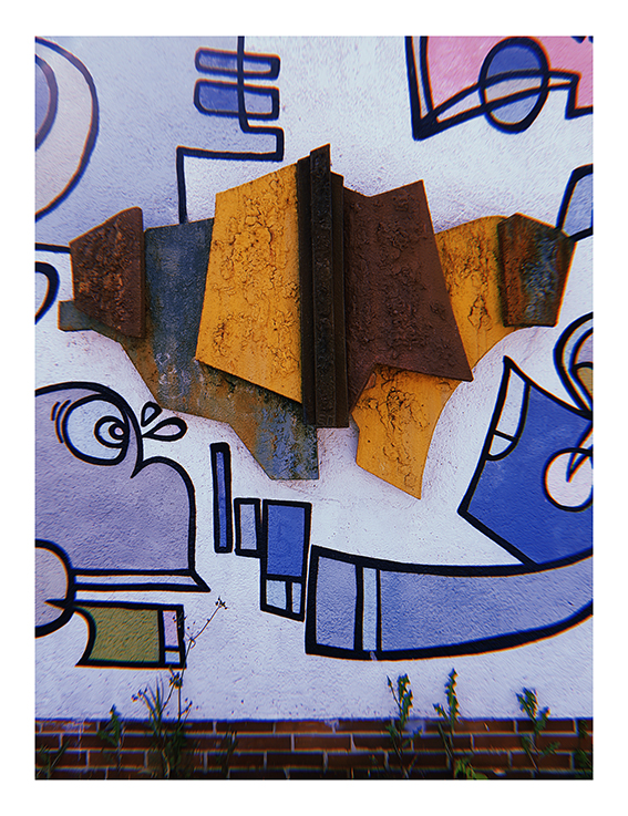 Plastbetónová plastiká na stene nákupneho strediska na Nám. Osloboditelov v Humennom